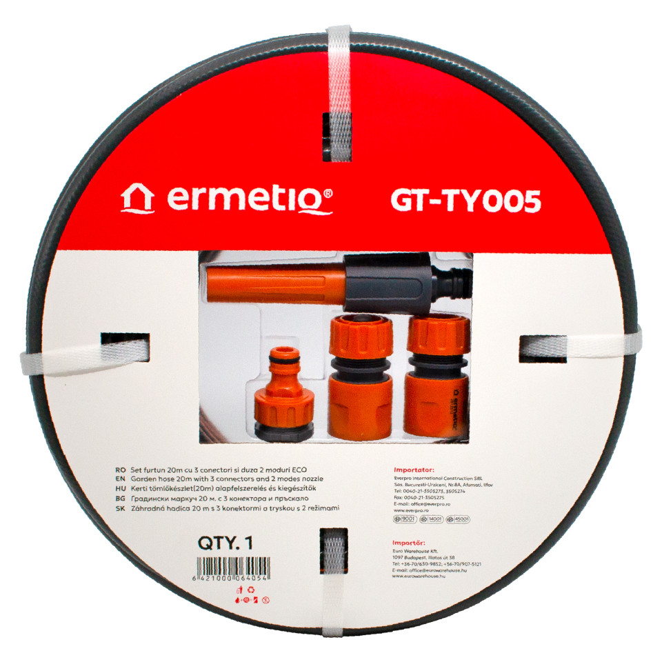 Prev Next Prev Next Garden hose 20m with 3 connectors and 2 modes nozzle ×Close ermetiq Code: GT-TY005 1 carton: 6 Back to: Gardening accessories