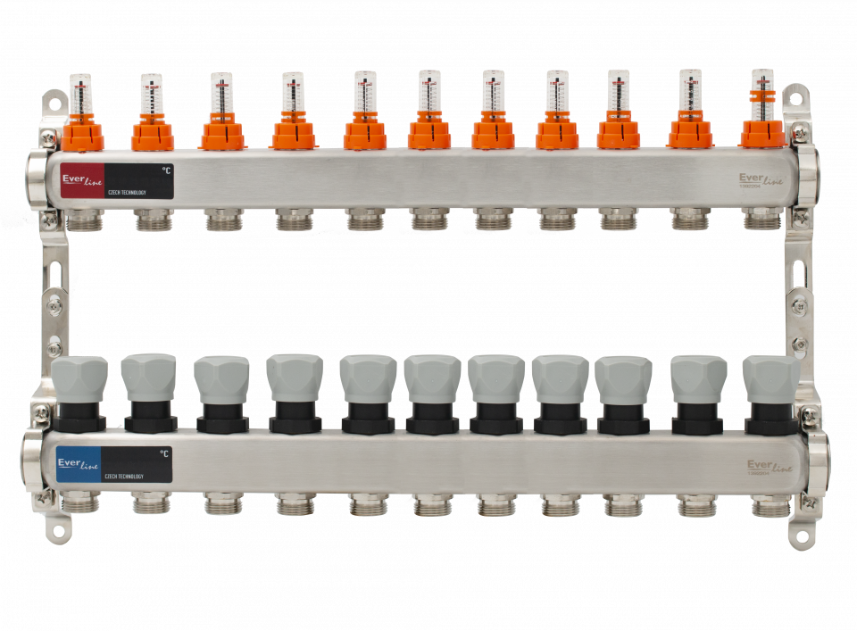 Nerezový rozdelovač s prietokomermi 1"- 11 okruhlový